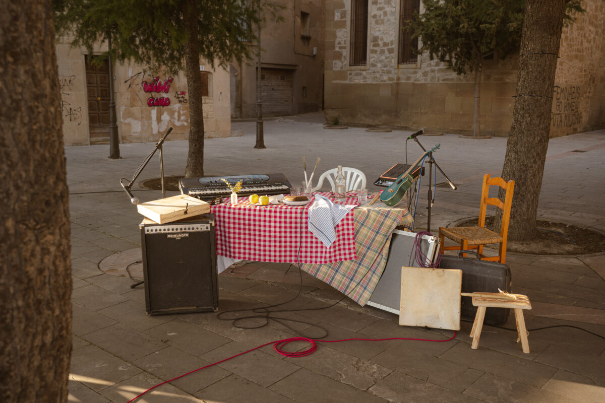 Una taula al mig del carrer es converteix en el centre de l’acció: un punt de reunió on públic i artistes comparteixen música, cos i veu, i on la frontera entre escenari i platea es desdibuixa. Amb una escenografia senzilla inspirada en la ruralitat i els vespres a la fresca, la proposta transforma la quotidianitat en ritual col·lectiu i el carrer en una jam a l’aire lliure.